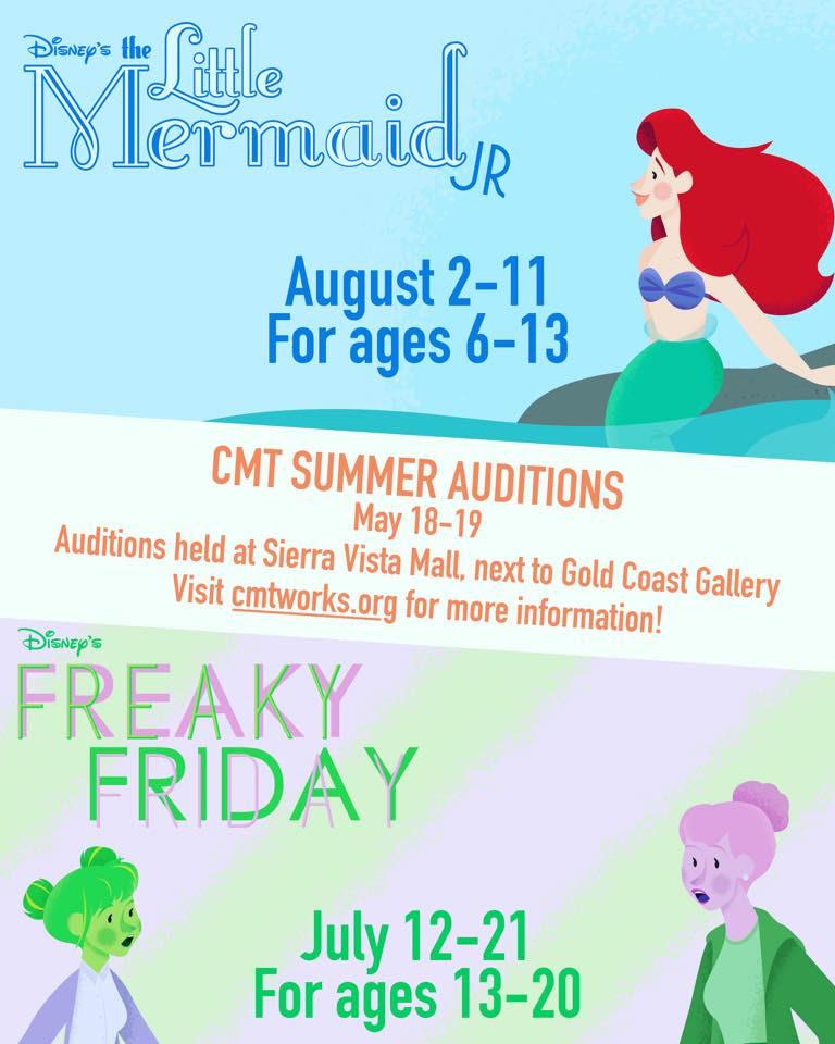 Two children’s theater companies hold auditions this weekend. What better way to entertain kids for the summer? Here are the flyers: