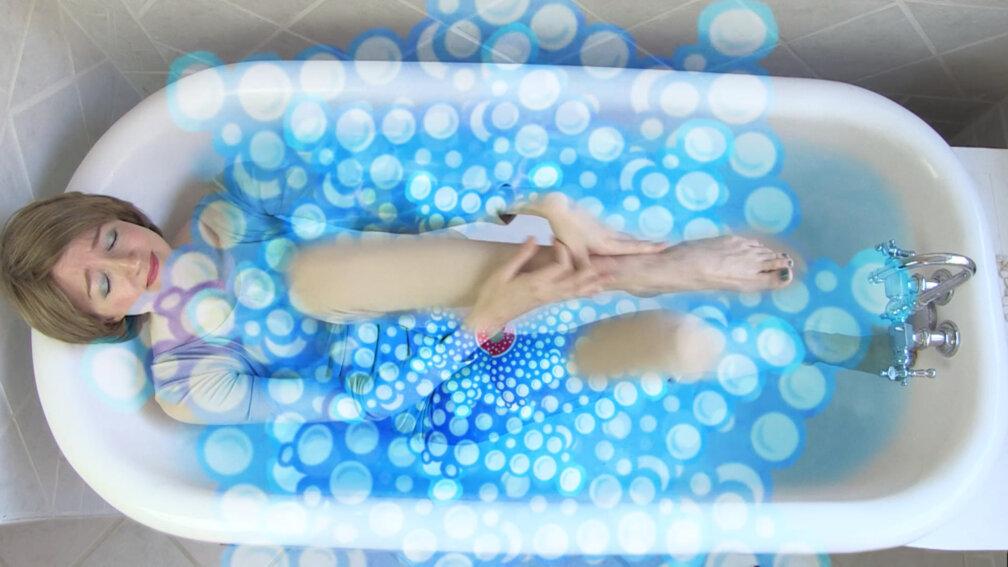Humor permeates the film. (I love when Cynthia takes a bath wearing a full body stocking, but she still gets the “blurred effect” on her breasts and genitals.) There’s also a big dose of social awareness. Moulton bases one of the extended vignettes in the film on the story of Julia Butterfly Hill, who lived in a California redwood tree for 738 days to prevent it from being cut down. The image of Cynthia floating/falling from the tree while a singer serenades her is startling, especially when she reaches the bottom.