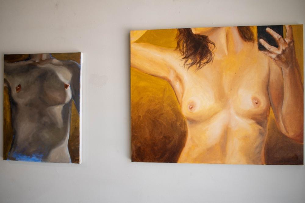 Upon entering the exhibition, I was greeted with a series of images of various breasts. Araujo created the collection to celebrate female reproductive parts in their truest form, but to also have attendees relate and find similarities with their own bodies. The series of 50 oil paintings are handled with sensitivity in regards to keeping the subject’s identity anonymous.