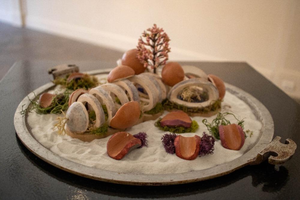 To examine that issue, Katrina Elaine Sanchez Carlock and Julie Araujo, two Fresno State graduate students, present the exhibition “Beneath The Surface” at Corridor 2122. It continues through Aug. 3. The exhibition opened on July 6 with a turnout of nearly 100 attendees. Araujo presents a series of artworks dedicated to exposing natural female bodies in the most vulnerable light and also appreciating the different forms of each individual body. Carlock offers a series of phallic sculptures through the female gaze, each one taking an almost fantastical form.